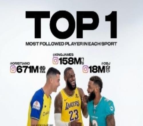 足篮橄榄球三大运动ins粉丝排行前五球星!C罗6.7亿老詹1.58亿