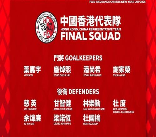 北京时间2月12日,中国香港足总公布了贺岁杯大名单。港队贺岁杯vs首尔大名单门将:叶嘉宇、庞焯熙、潘尚希、谢...