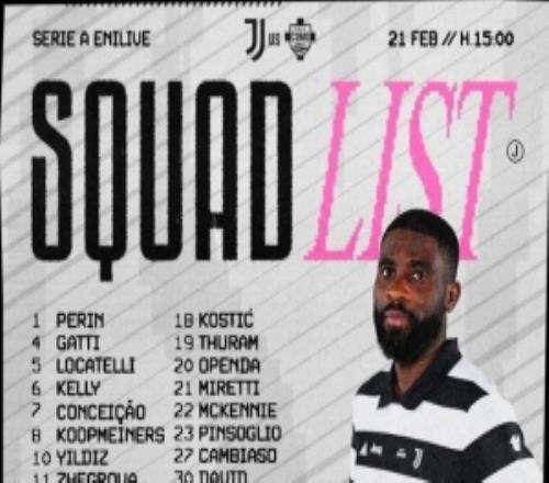 体育播报2月21日宣 北京时间今天晚上22点,尤文将在意甲第26轮比赛中主场对阵科莫,尤文公布了此役的球员名单。...