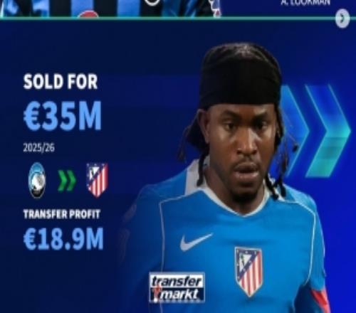 体育播报2月23日宣 亚特兰大前锋卢克曼在冬窗转会马竞,《转会市场》也统计了亚特兰大近年通过低买高卖的盈利...