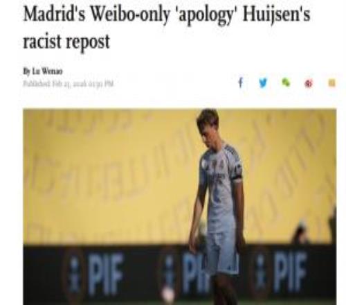 环球时报英文版关注赫伊森事件:中国球迷不满“官博特供”致歉