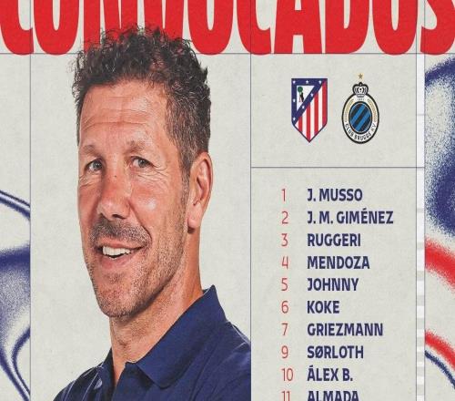 马竞迎战布鲁日大名单:格列兹曼、小蜘蛛、卢克曼在列