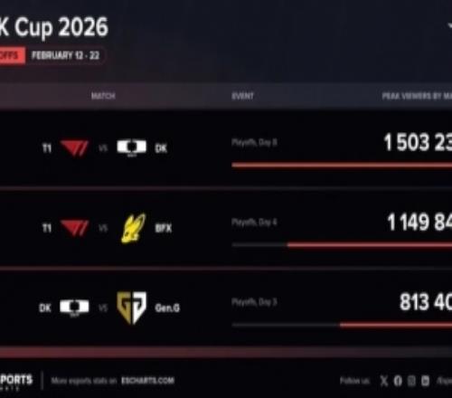 外媒统计2026LCK杯海外峰值:DK对战T1第一T1对战BFX第二