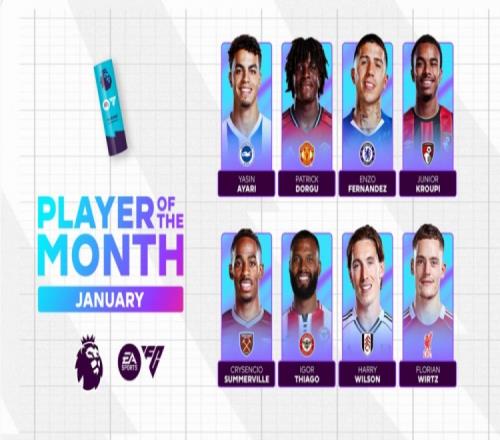 英超官方1月最佳球员候选:恩佐领衔、多尔古、维尔茨在列_24直播网