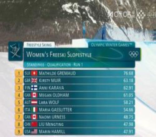 自由式滑雪女子坡面障碍技巧决赛9日1930进行,三位中国选手参赛