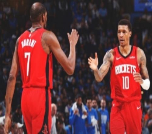 合砍42分!火箭官方赢球海报封面:杜兰特和小贾巴里击掌