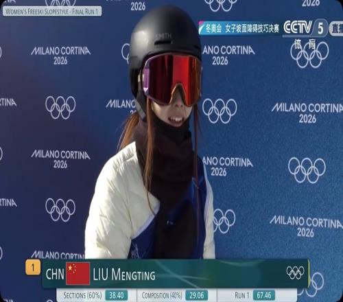 第2个出场的中国选手刘梦婷第一滑得到67.46分,第二滑刘梦婷得到13.66分,第三滑11.28分。