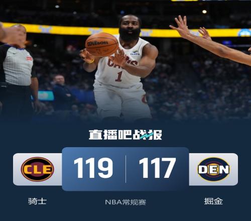 比赛开始,骑士开局6-0领先,斯特劳瑟成为奇兵,内外开花独得11分率队打出15-2的攻击波强势反超,米切尔依靠个人能力单打拿分带队追赶,掘金连续杀伤稳住局势,次节骑士打出10-0的攻击波迫近比分,掘金连续三分命中强势回应,哈登连投带罚拿分,半场战罢骑士54-59落后掘金。易边再战,哈登冲击篮筐连得4分带队反超,穆雷里突外投稳住局势,末节约基奇得分助攻一肩挑将分差拉开到两位数,哈登连送助攻迫近比分,双方争夺陷入白热化,关键时刻哈登三分扳平,米切尔造成杀伤两罚都有,约基奇反绝杀失手。最终,骑士119-117逆转掘金,客场过关。