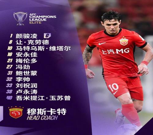 上海海港这边,主教练穆斯卡特安排守门员颜骏凌担任场上队长,让·克劳德、马特乌斯·维塔尔、安永佳、奥斯卡·梅伦多·希门尼斯、冯劲、鲍世蒙、李帅、刘祝润、卢永涛、吾米提江·玉苏普同时首发。