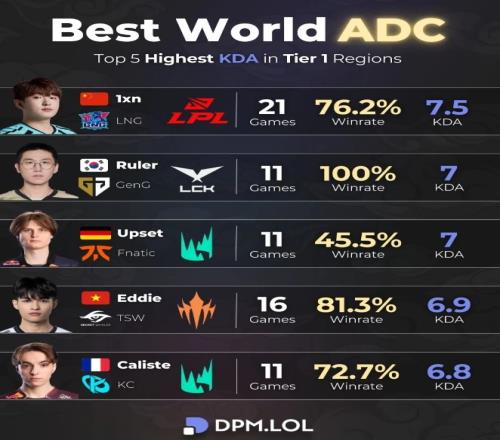 体育播报2月13日宣 外媒统计五大赛区AD选手开赛以来KDA前五: