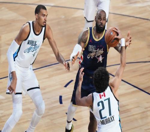 詹姆斯在自己第22次全明星之旅,合计得到15分7篮板5助攻,而杜兰特合计得到12分3篮板2助攻3抢断1盖帽数据。