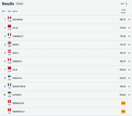 两名瑞士选手格雷莫德和安德拉斯卡在赛前因伤退赛,决赛由十位选手登场。