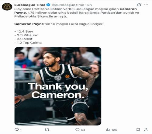 根据欧媒的报道,本赛季佩恩在签约贝尔格莱德游击队后,他在欧冠赛场的10场比赛,场均12.4分2.3篮板3.9助攻1.2抢断,32岁的佩恩竞技状态还是不错,他一直都想回NBA打球。