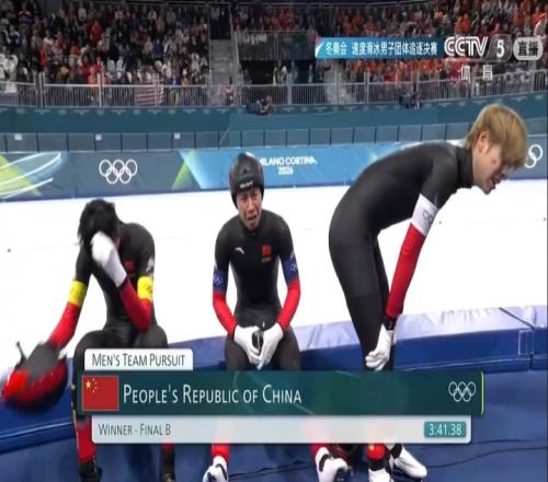 体育播报02月17日宣 米兰冬奥会速度滑冰男子团体追逐B组决赛中,由刘瀚彬、李文淏、吴宇出战的中国队0.09秒险胜荷兰队,获得铜牌,历史首次登上这个项目的领奖台!赛后中国队队员吴宇喜极而泣!