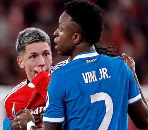 进球的维尼修斯无疑是本场比赛表现最好的皇马球员之一,在这粒进球之后,维尼修斯选择了在角旗附近庆祝,由于庆祝动作的问题拿到了一张黄牌。这依然不是比赛最精彩的部分,随后维尼修斯向主裁判进行投诉,表示遭到了本菲卡球员普雷斯蒂亚尼种族歧视言语攻击,随后选择了罢赛,比赛一度暂停。在比赛恢复之后,穆里尼奥由于不满裁判连续咆哮吃到了两张黄牌,不会出现在次回合的教练席上。