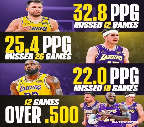 湖人队本赛季得分最高的三位球员加起来缺席了56场比赛!