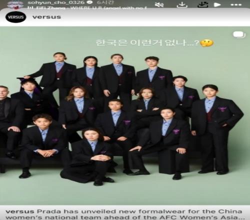 体育播报02月19日宣 女足亚洲杯前夕,韩国女足37岁老将赵昭贤在INS上转发了一则中国女足与普拉达合作的大片,配文写道:“韩国没有这样的东西吗...?”