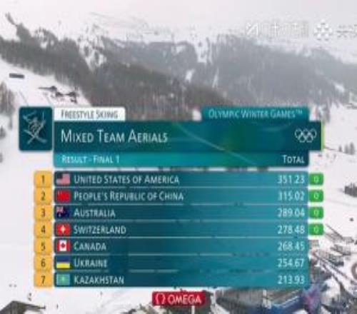 空中技巧混团决赛第1轮:中国队315.02分排名第2,晋级决赛第二轮