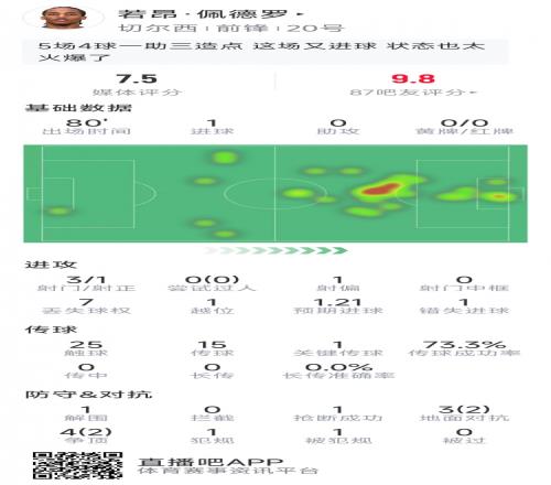若昂佩德罗本场数据:先拔头筹,3射1正,1关键传球,1次失良机