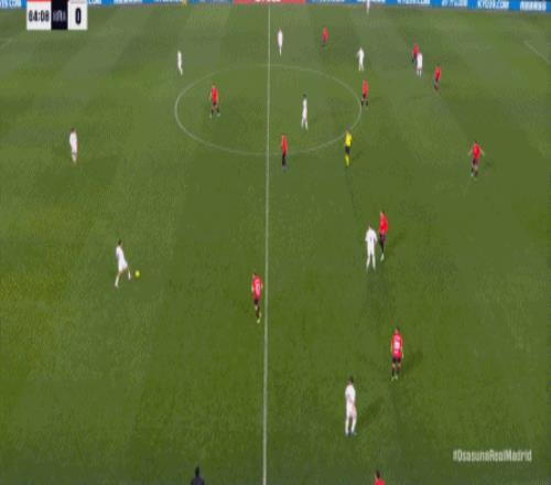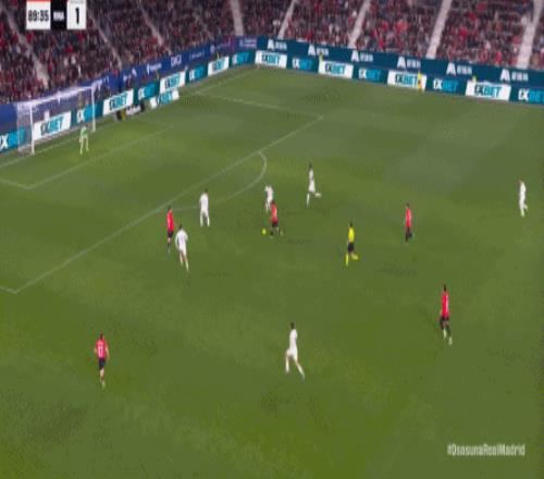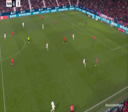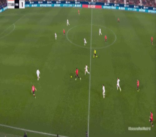 第78分钟,皇马在高位人盯人的时候出现问题,让奥萨苏纳打到了前场,而且再次打出了传中进攻的威胁: