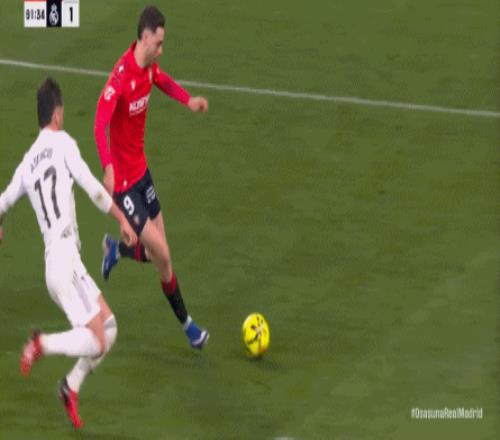 这是足球场上最残酷的现实,于是在第90分钟,奥萨苏纳在中线区域施加压力,让皇马出现了失误: