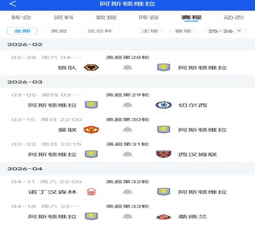 体育播报2月22日宣 TA撰文表示,维拉在本赛季末的赛程难度不高,不过球队面对低位防守和高强度身体对抗的对手时办法不多。