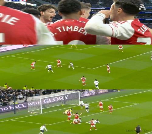北京时间2月23日,英超第27轮焦点战,托特纳姆热刺主场对阵阿森纳的比赛正在进行中,上半场赖斯出现传球失误。