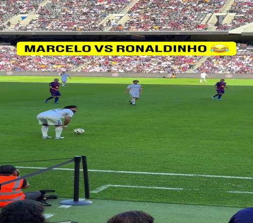巴萨传奇队vs皇马传奇队的表演赛在美国洛杉矶进行,比赛中小罗开玩笑推搡马塞洛,后者顺势倒地,复制了昔日国家德比的“火药味”。