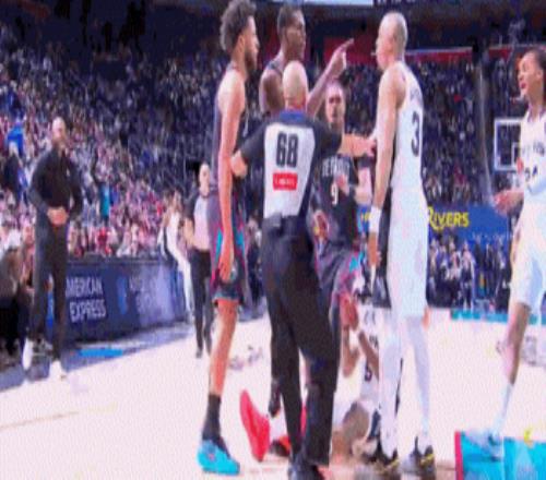 坎宁安卡位时一把推翻卡塞尔,引发冲突