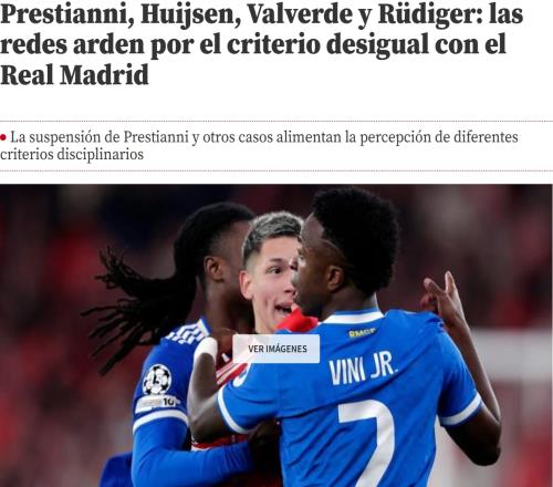 欧足联对普雷斯蒂安尼的临时禁赛,点燃了一场远超单一纪律处分范畴的讨论。在社交网络上,此事件与近期发生的其他几件事交织在一起。在许多球迷看来,这些事例共同证明,一旦涉及皇家马德里,处罚标准便会发生不同。