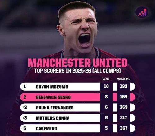 在与埃弗顿的英超第27轮比赛中,谢什科替补登场打入一球,至此,曼联前锋谢什科本赛季各项赛事已打入8球,平均每164分钟打入一球。