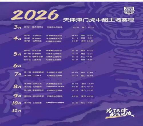 天津津虎队2026赛季中超联赛