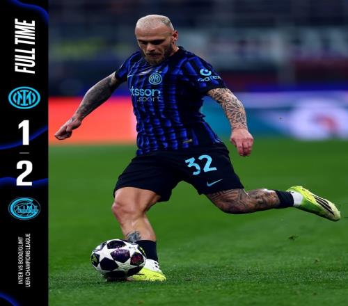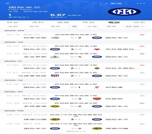 本赛季欧冠,国米前四轮全胜,一度与阿森纳和拜仁排名欧冠前三。但是随后赛程变艰难,国米遭遇三连败跌出直通区。最终阿森纳拜仁前二晋级,国米无缘直通,只能打附加赛。