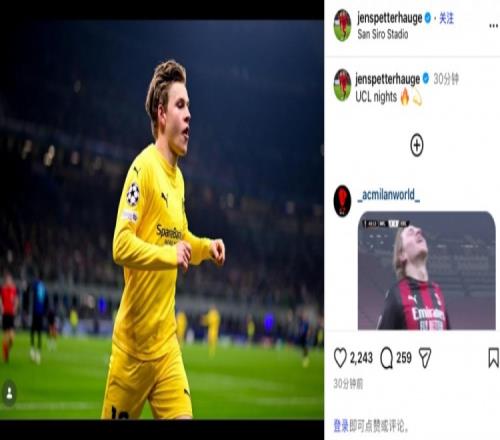 赛后球员更新社媒,晒出自己的比赛照庆祝胜利,并配文写道:“欧冠之夜。”