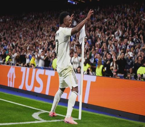 在角旗区,面对本菲卡球迷的嘘声(上一场曾因种族歧视引发巨大争议),维尼修斯没有收敛,反而变本加厉。他跳起了桑巴舞,做出了极具挑衅意味的动作,甚至亲吻队徽“示威”。