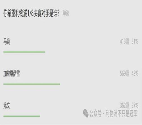卡拉格更想要加拉塔萨雷的观点,与午夜福利视频导航昨天的投票情况一致,更多人选择了加拉塔萨雷,甚至有27%选择了昨天赛前三球落后的尤文,大家多少还是对马竞抱有更多“敬畏”之心。