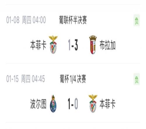 1月15日,葡萄牙杯1/4决赛,本菲卡0-2客负里奥阿维。
