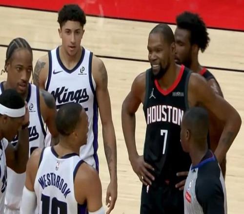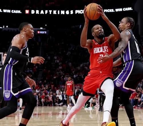 北京时间2月26日,NBA常规赛继续进行,萨克拉门托国王队前往客场挑战休斯顿火箭队。国王队伤病满营,此前刚刚结束队史最长的16连败,但这并不会改变球队俯冲状元签的计划。火箭队全明星周末过后3战2胜,球队在西部第3和西部第5之间摇摆,阿门不幸遭遇股四头肌伤势。此役,国王队首发五虎为威少+德罗赞+穆雷+阿丘瓦+雷诺,火箭队首发五虎为杜兰特+申京+阿门+小贾巴里史密斯+伊森。
