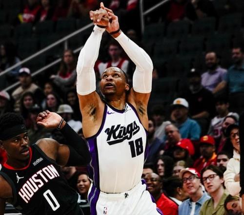 第一位是威少,燃尽自己,输球也可以昂首离开。威少的斗志毋庸置疑,威少遇见大哥杜兰特往往能迸发出更加惊人的战斗力。此役,威少首节就给杜兰特和火箭队一个下马威,单节独砍17分+3篮板,作为对比,国王全队首节仅砍下22分。全场比赛下来,威少出战25分钟,19投10中(三分球7中1),罚球1中1,空砍22分+5篮板+3助攻。威少无惧岁月无惧风,可他确实不足以凭借一己之力改写国王队惨负老东家的命运。