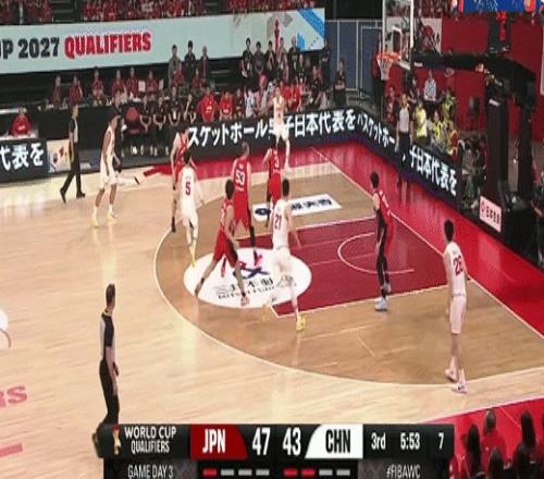赵继伟三分命中反超4分!中国男篮53-49日本