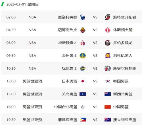 根据赛程,第四轮的比赛将在3月1日开打,中国队客场对阵中国台北队,将在北京时间下午16点开打,央视CCTV5频道现场直播。此外,同组的日本队继续坐镇主场迎战韩国队的做客,开球时间是下午13点。