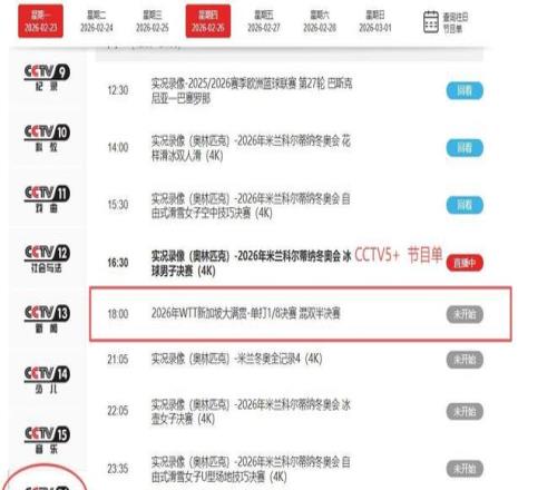 原定于CCTV5播出的WTT新加坡大满贯系列赛事,包括王曼昱VS申裕斌这一焦点战,整体迁移至CCTV5+频道同步直播,画面质量、解说阵容与互动体验全面对标主频道。