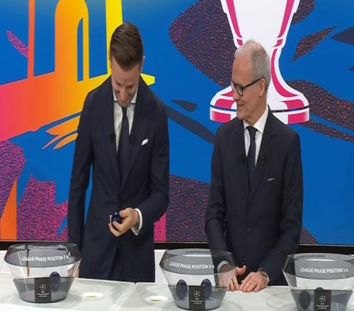 体育播报02月27日宣 欧冠1/8决赛抽签请来拉基蒂奇当嘉宾,上来第一组最关键的皇马vs葡体还是曼城抽签,拉基蒂奇居然手滑拧不开!
