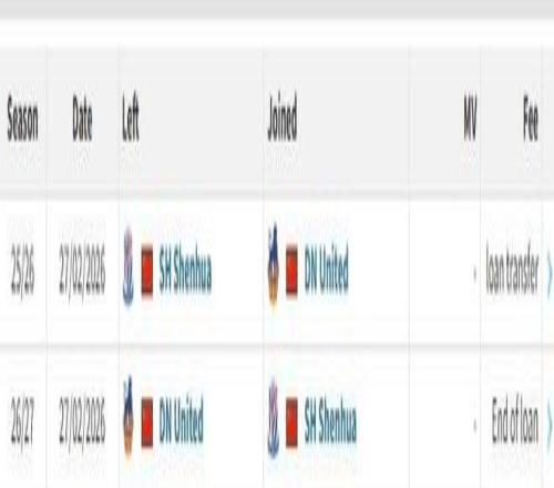 北京时间2月27日,德转更新,上海申花前锋王汉龙租借加盟定南赣联。