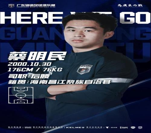 为进一步提升球队在赛场上的综合竞争力,并与球员本人充分协商一致, 蔡明民即日起正式加盟广东铭途足球俱乐部一线队。