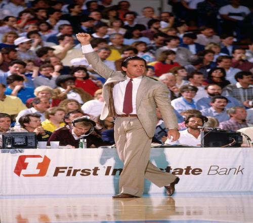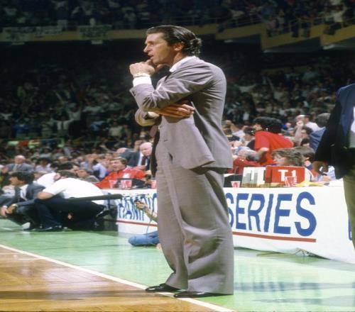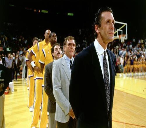 如果说最初的形象是为了匹配“表演时刻”的浮华,那么莱利用持续的胜利和卓越的执教,将这种风格升华为一种领导力的象征。他带领湖人在1982、1985、1987和1988年四夺总冠军,打造了80年代最具观赏性的球队之一。
