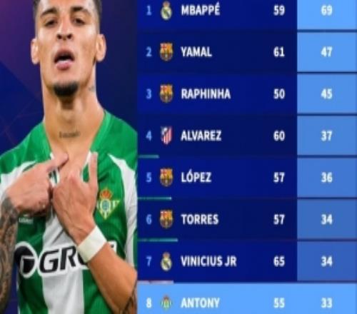自加盟贝蒂斯以来,安东尼各项赛事出战55场比赛参与33球