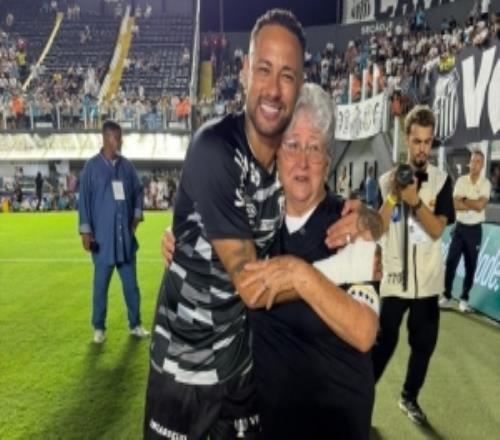 暖!内马尔邀请桑托斯老球迷观赛并拥抱合影,老球迷激动落泪