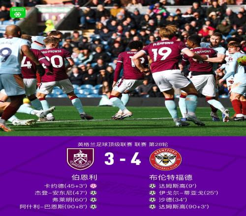 戏剧性拉满,布伦特福德43伯恩利,巴恩斯绝平球被吹,达姆斯高2射1传