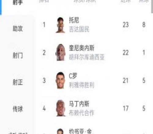 沙特联射手榜:托尼23球领跑C罗21球第3,菲利克斯、卡拉斯科13球